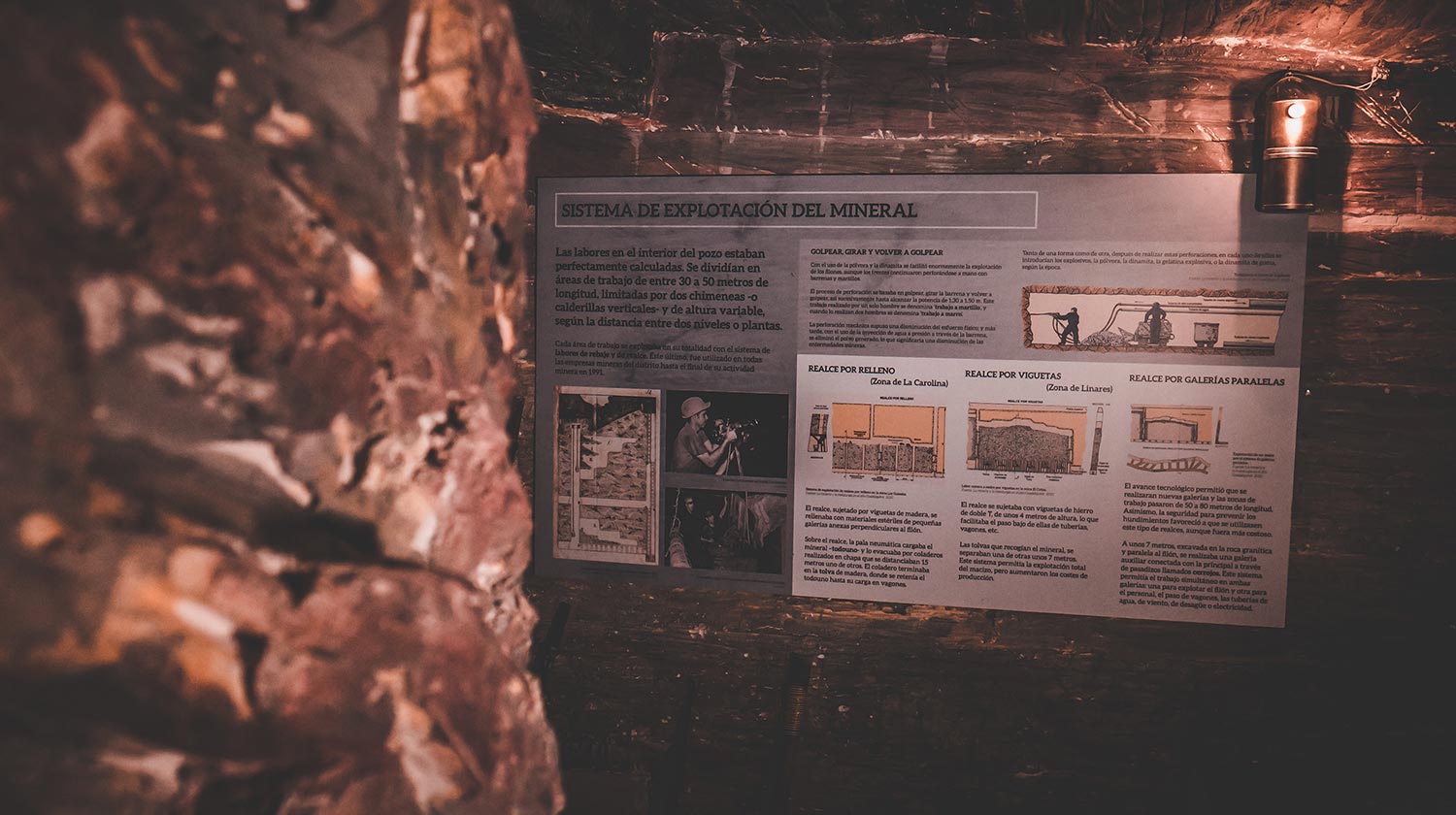 A menos de 2 Km de la localidad, enclavada en un lugar privilegiado, donde se alzaban las explotaciones de las compañías mineras de “Los Guindos“, “La Aquisgrana“, “El Castillo” y “La Rosa“, se encuentra este aula como un espacio didáctico y visitable en el que se encontrará en una galería de mina perfectamente recreada al detalle.